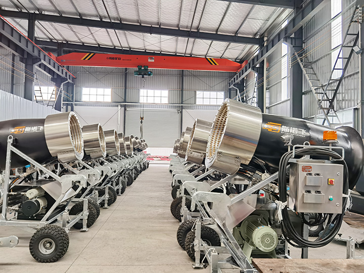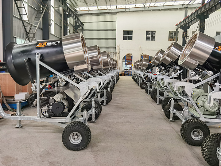 公司成立多年來,擁有自己固定生產人員和專業團隊。本公司生產的造雪機按規格分類有大型、中型、小型、微型四個品種;按使用環境分類有不帶高壓水泵和自帶高壓水泵兩大類;按走行方式分類有拖拉式走行和自主走行兩類。